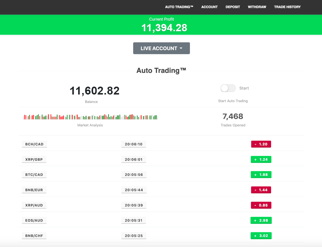 للبدء، يجب على المستخدمين إيداع مبلغ أولي قدره 1000 درهم إماراتي. تقوم الخوارزمية بتحليل تحركات السوق وتنفيذ الصفقات في أكثر اللحظات ربحية - الشراء بسعر منخفض والبيع بسعر مرتفع - بهدف تعظيم الأرباح مع تقليل المخاطر.